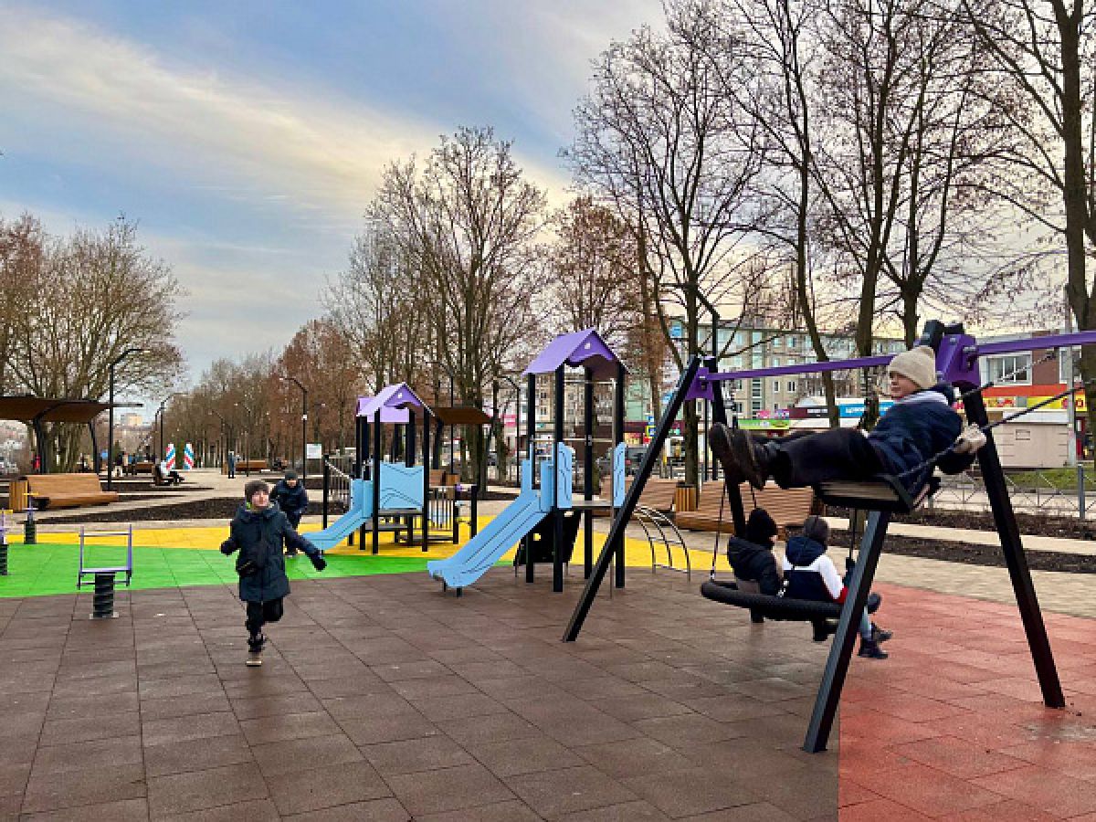 Благодаря благоустройству в сквере появилась детская площадка, устроено освещение и видеонаблюдение, обновлена тротуарная плитка, установлены малые архитектурные формы, проведено озеленение.