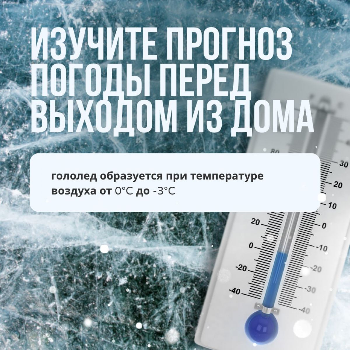 Также важно следить за температурой за окном и помнить, что гололед образуется при температуре воздуха от 0°C до -3°C.