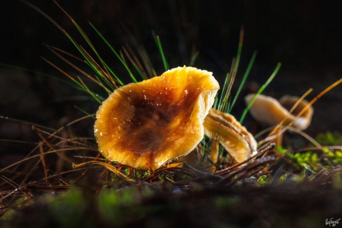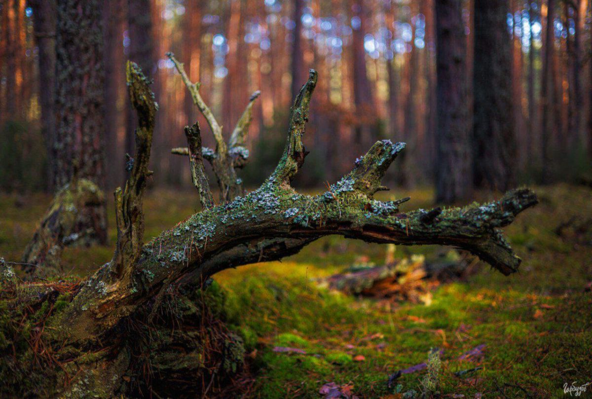 Поваленные деревья, покрытые лишайником, выглядят как старые стражи, которые когда-то держали границы местного «лешачьего княжества». Маленькие грибы в низком солнце сияют так, будто их поставили на сцену.