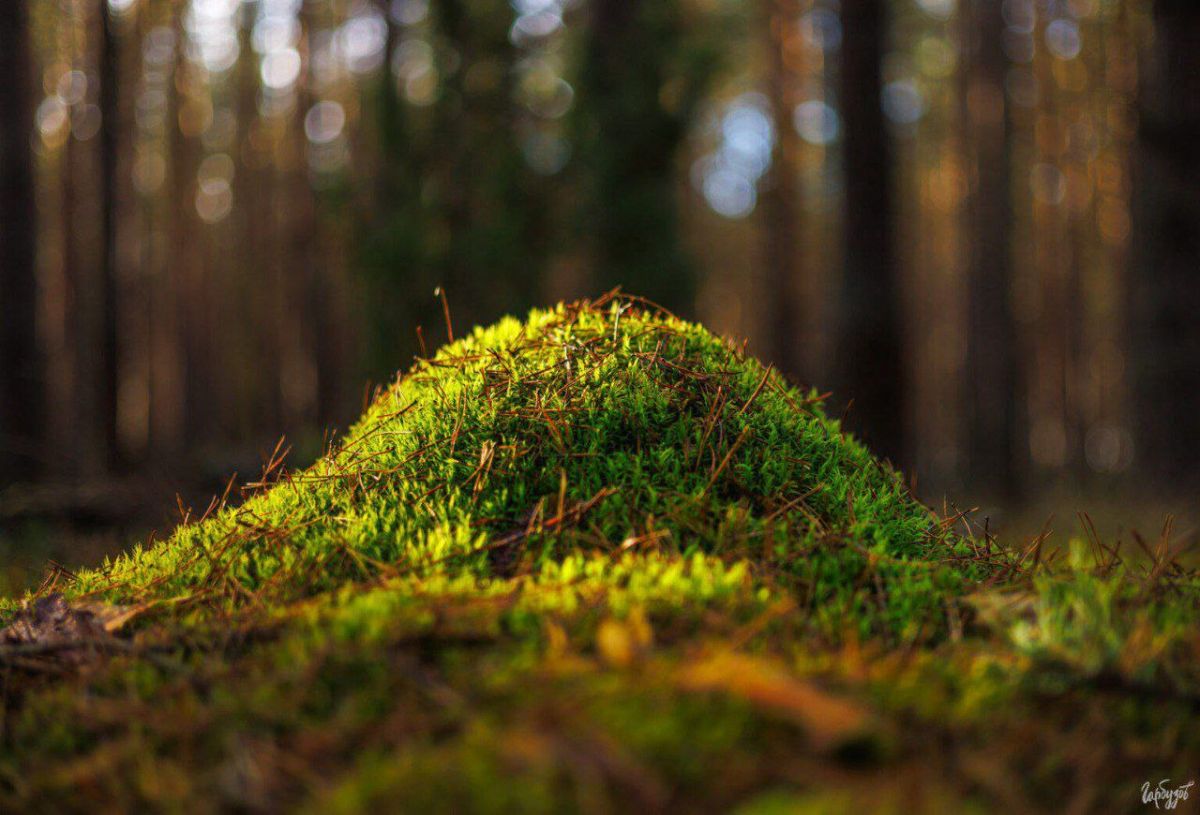 Даже обычный холмик мха превращается в отдельный маленький мир — со своей географией, своей погодой, своими солнечными закатами.