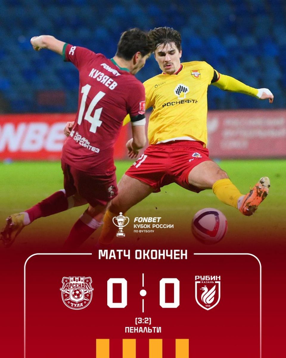 Тульский «Арсенал» начал матч 1/4 финала Кубка России против казанского «Рубина»