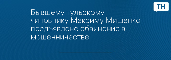 Бывшему тульскому чиновнику Максиму Мищенко предъявлено обвинение в мошенничестве