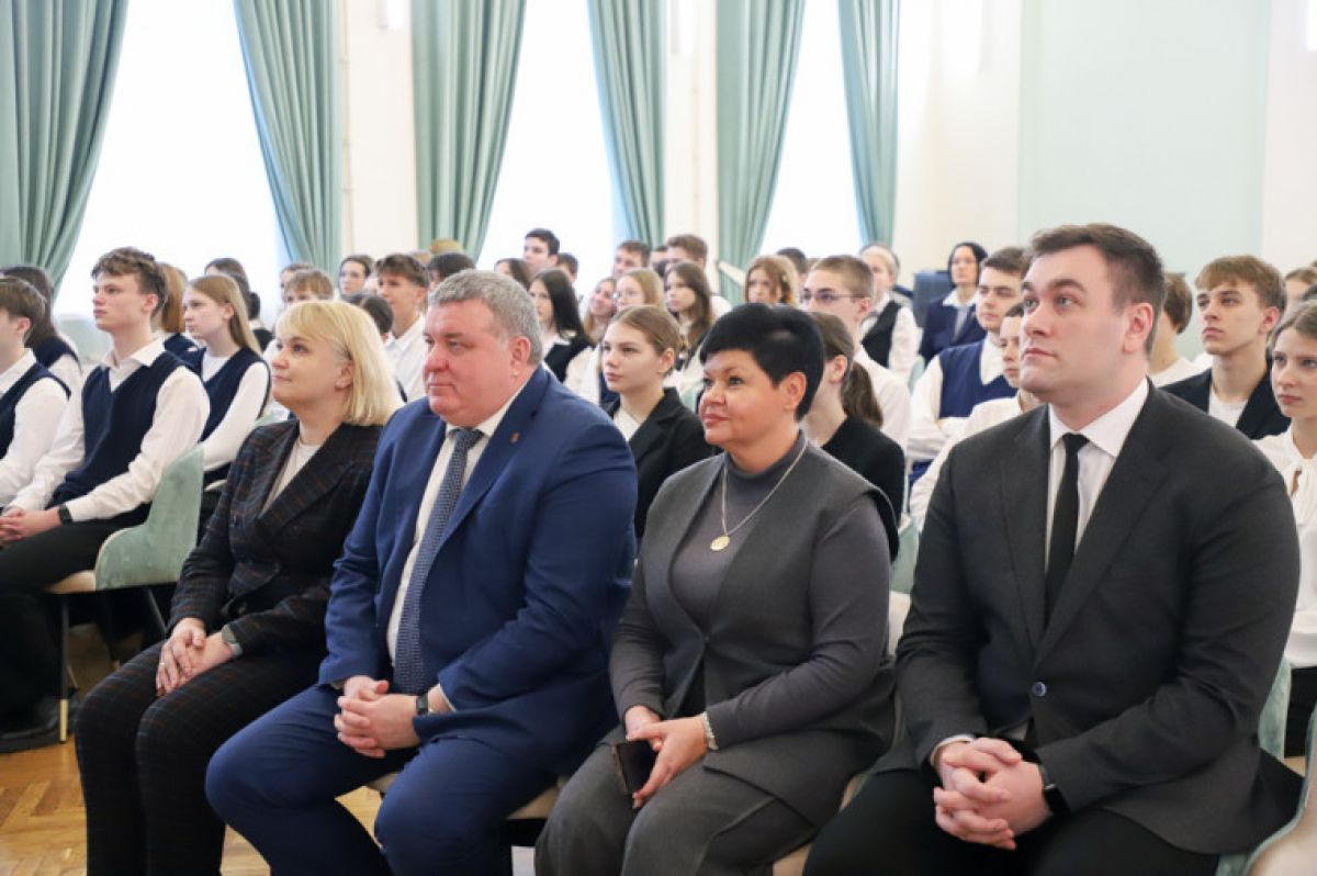 Глава городской администрации посетил торжественное мероприятие, посвященное годовщине Тульской оборонительной операции, в гимназии № 11 имени Александра и Олега Трояновских.