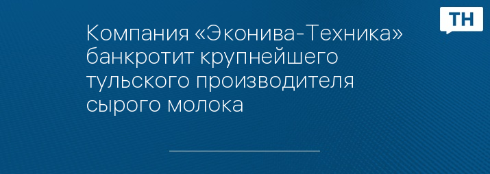 Компания «Эконива-Техника» банкротит крупнейшего тульского производителя сырого молока