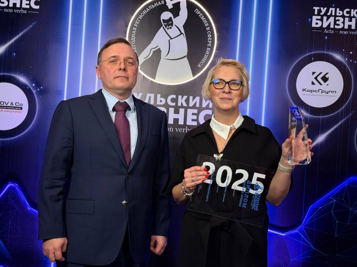 На церемонии вручения премии «Тульский бизнес 2025» компания «Белёвская пастила» была отмечена лучшей в номинации «Пищевая промышленность». За заслуженной наградой на сцену поднялась руководитель отдела маркетинга и рекламы Марина Штондина. Статуэтку лауреату вручил председатель избирательной комиссии региона Павел Веселов.