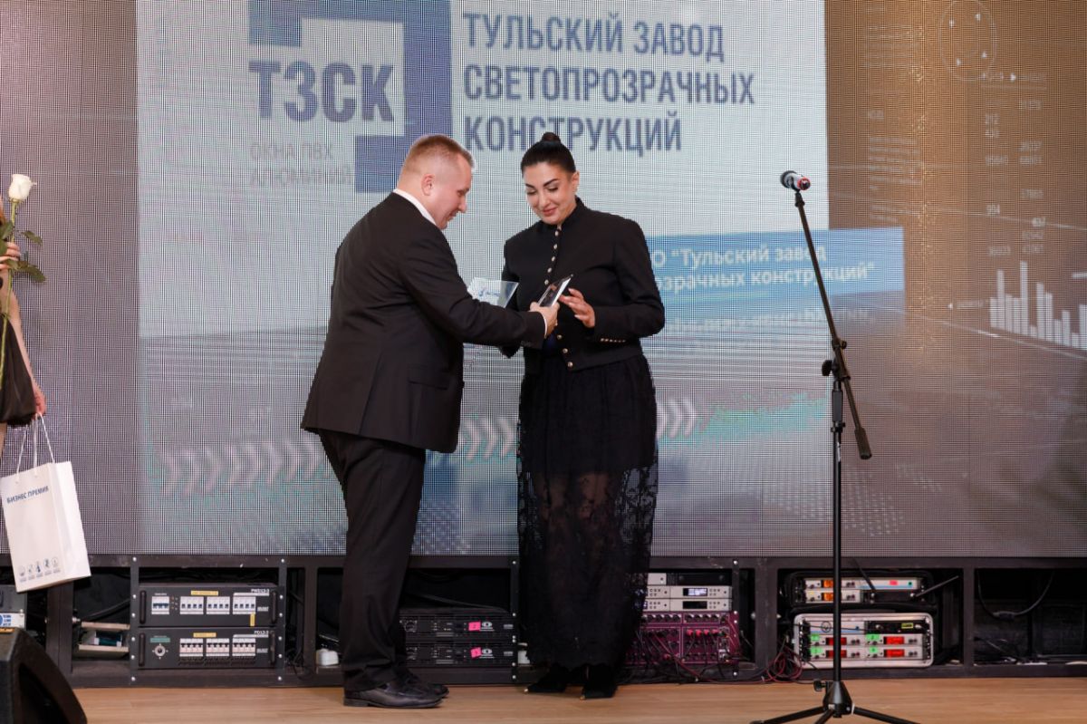 На торжественной церемонии награду в премии в номинации «Профессионализм и эффектность» победителю — Тульскому заводу светопрозрачных конструкций - генеральный директор Региональной Корпорации развития и поддержки Сергей Кирюхин. На сцену за статуэткой поднялась директор завода Теймине Зотова.