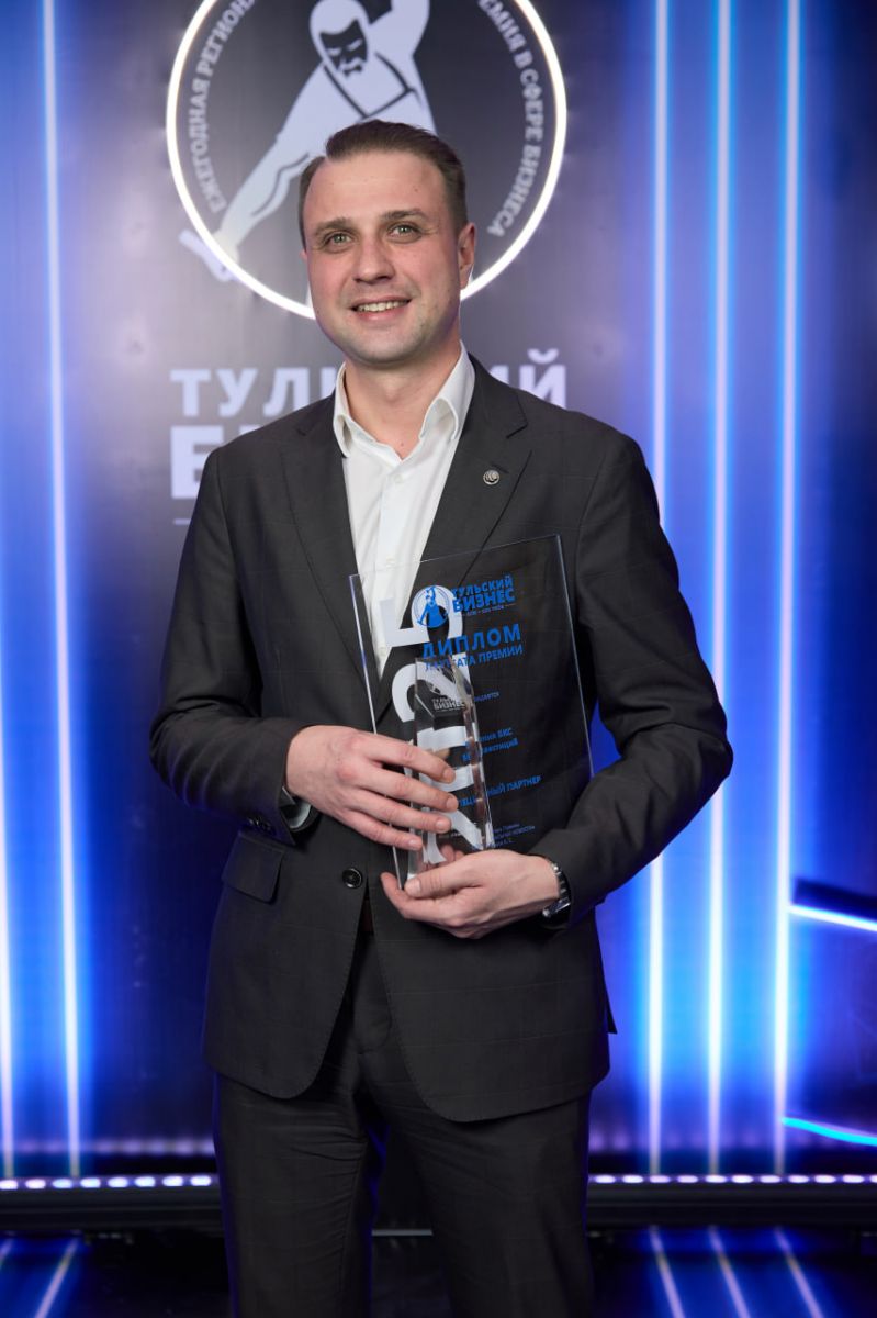 В торжественной обстановке статуэтку премии директору тульского филиала БКС, Максиму Синицыну, вручил Алексей Наумов, учредитель Группы компаний "Виста" и член постоянного Экспертного совета премии, что символизирует признание заслуг компании в бизнес-сообществе.