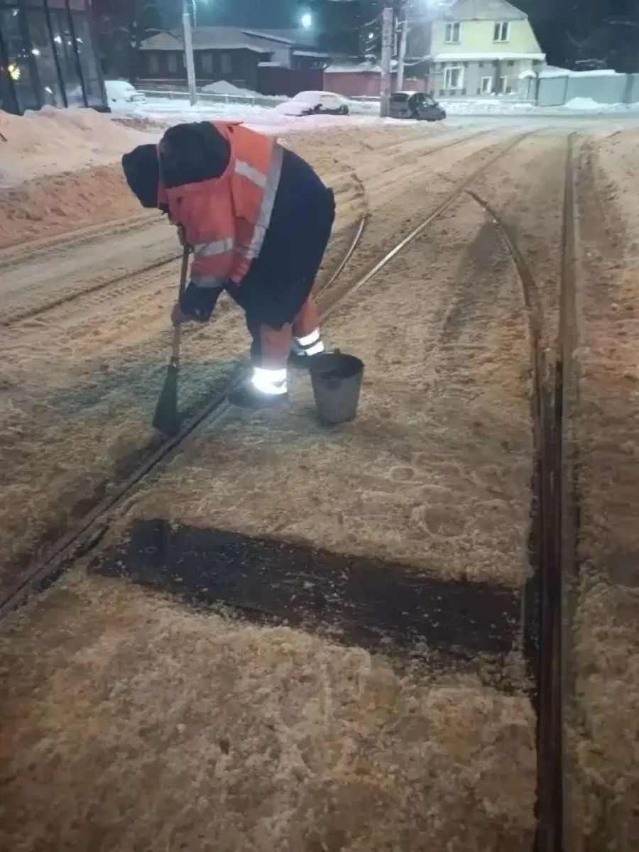 Специалисты проводили ремонт трамвайных путей в новогодние праздники