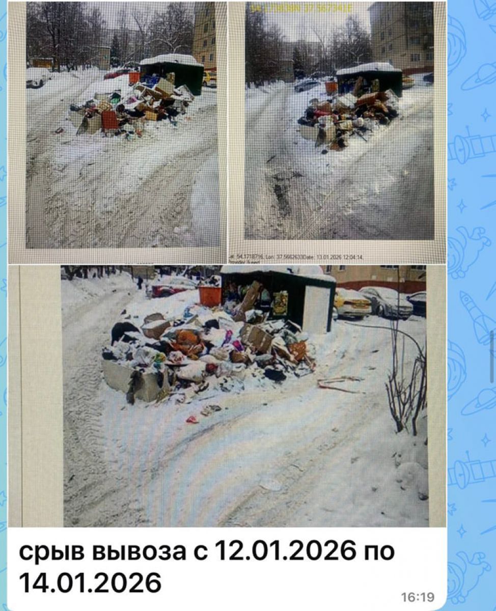 Был зафиксирован срыв вывоза отходов и по адресу ул. 2-й проезд Гастелло, дом 17к2. С 5 по 8 января мы вывозили мусор в штатном режиме. С 9 по 13 января произошел срыв из-за отсутствия возможности подъезда, о чем наша компания сообщила в ответственную за дом ООО «УютДом». 14 января контейнерная площадка была зачищена, при этом работы по расчистке подъездных путей и перед площадкой сделаны не были, что осложнило нам работу.