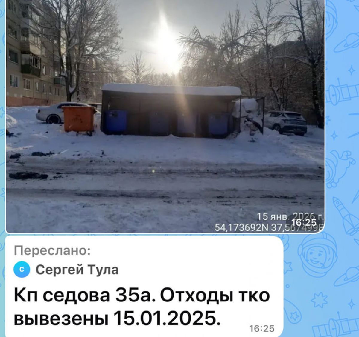 — Да, например, ситуация у дома 35 на улице Седова. Сначала мы работали по графику, но 8-9 января из-за сильного снегопада подъехать и выкатить баки стало невозможно. 10 января нам пришлось самим организовать зачистку, чтобы хоть как-то вывезти мусор. Потом снегопад возобновился, и с 12 по 14 января снова были срывы. Мы отправили официальное письмо в управляющую компанию «Жилцентр» с просьбой обеспечить проезд. Расчистку они провели только 15 января, и мы сразу же выполнили вывоз.