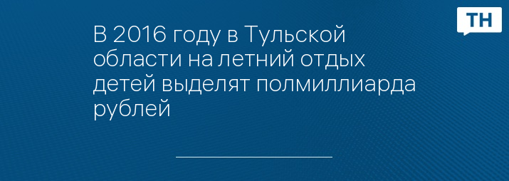 В 2016 году в Тульской области на летний отдых детей выделят полмиллиарда рублей