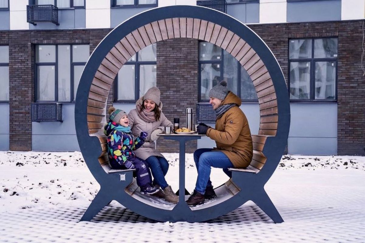 Тем, кто любит движение, понравится зона воркаута с тренажёрами, а также дорожки для бега и велопрогулок. В центре двора расположена многофункциональная спортивная площадка: летом здесь проходят тренировки и игры, а зимой она превращается в каток и становится местом притяжения для всей семьи.