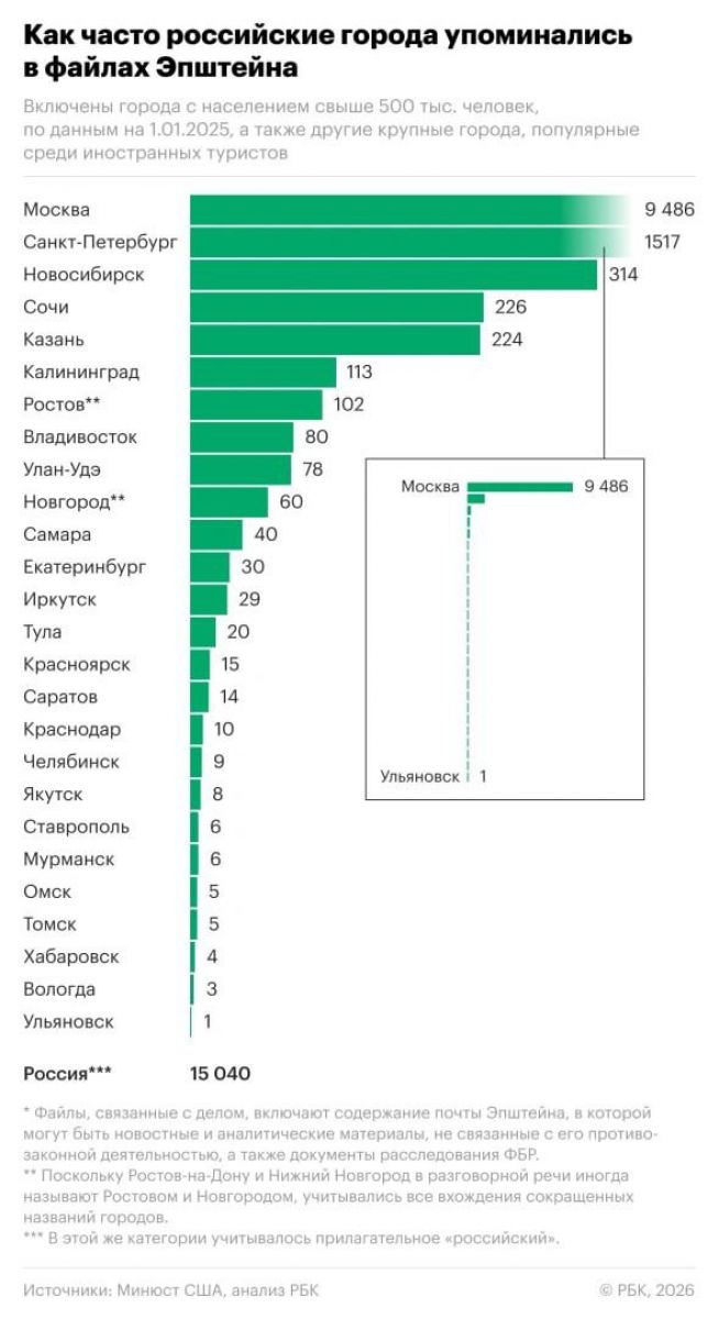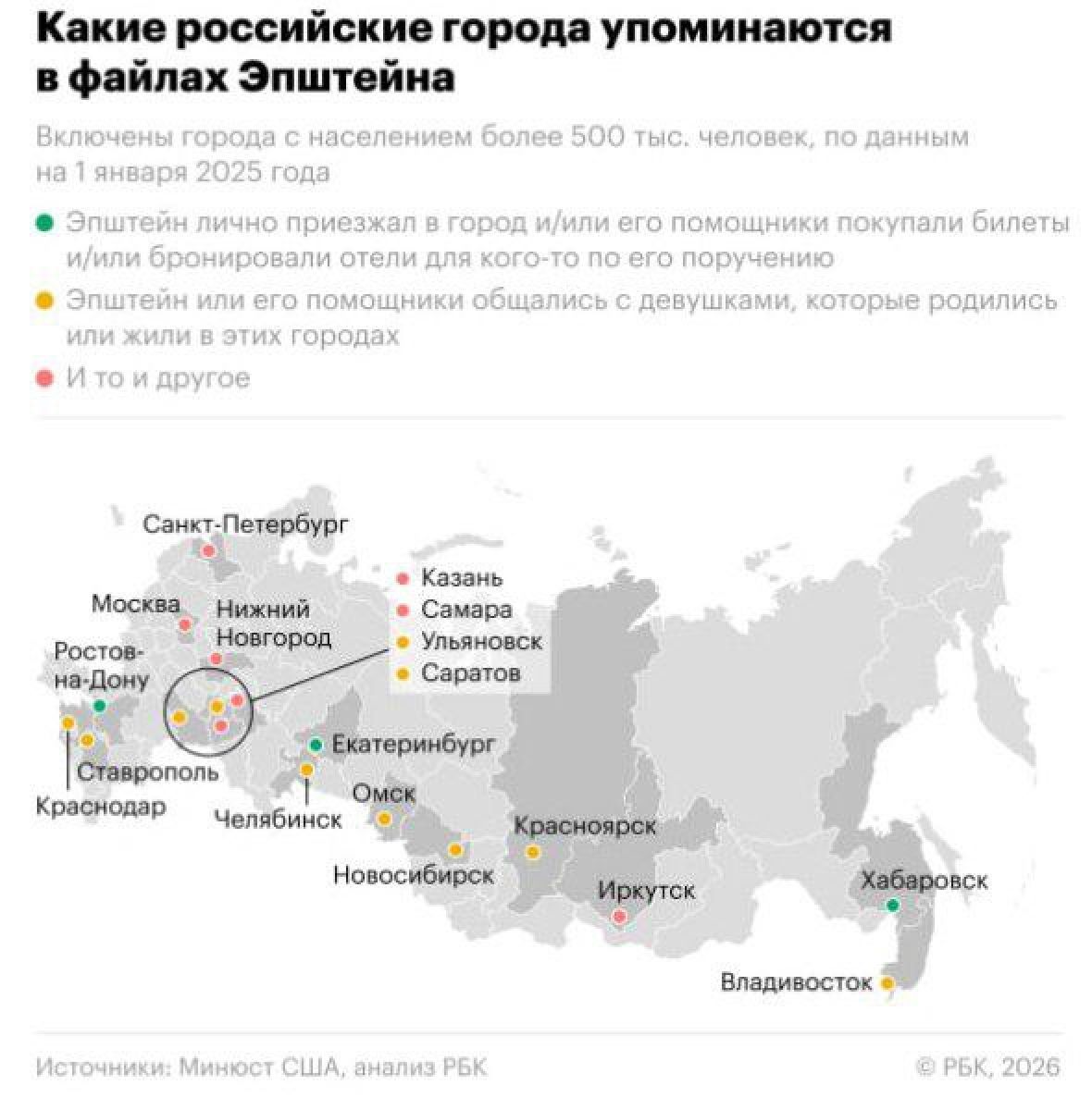 Согласно документам, Эпштейн лично посещал некоторые из этих городов или организовывал поездки туда через своих помощников, оплачивая перелеты и проживание. В список этих мест попали Ростов-на-Дону, Екатеринбург и Челябинск.