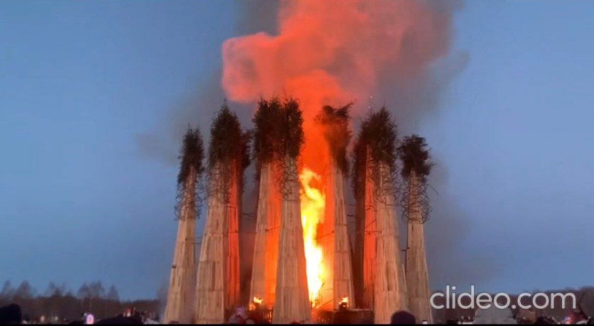 Отметим, что калужский арт-парк "Никола-Ленивец" известен своими масштабными масленичными перформансами, в предыдущие годы там сжигались такие объекты, как деревянный замок, "Вулкан" и "Четвертая стена".