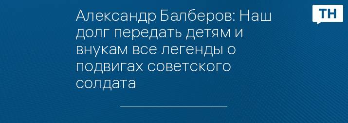 Александр Балберов: Наш долг передать детям и внукам все легенды о подвигах советского солдата