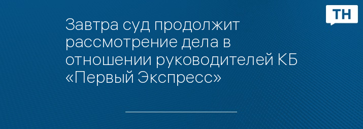 Завтра суд продолжит рассмотрение дела в отношении руководителей КБ «Первый Экспресс»
