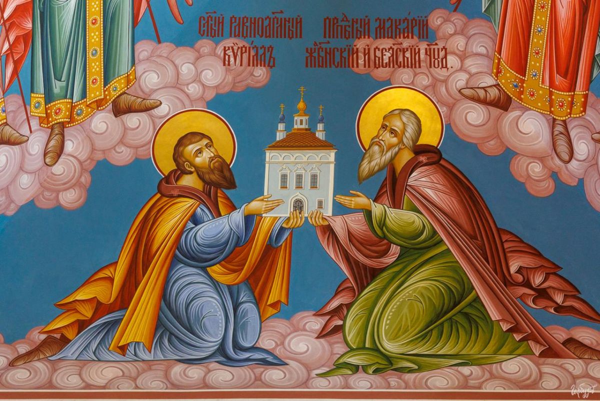 Особенно сильное впечатление производит композиция с преподобным Макарием Жабынским. Древний подвижник, имя которого неразрывно связано с этой обителью, словно и сегодня продолжает держать её в порядке силой молитвы. Когда видишь изображение храма в его руках — возникает почти физическое ощущение преемственности: века проходят, а монастырь стоит.
