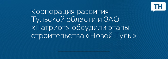 Корпорация развития Тульской области и ЗАО «Патриот» обсудили этапы строительства «Новой Тулы»