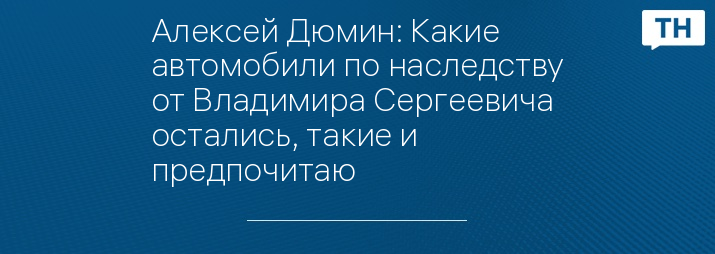 Алексей Дюмин: Какие автомобили по наследству от Владимира Сергеевича остались, такие и предпочитаю