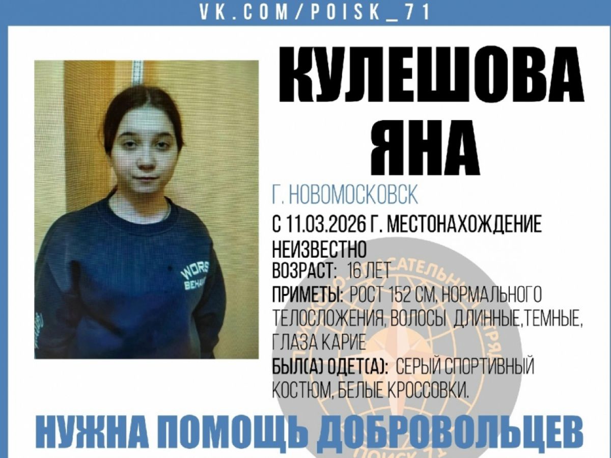 В Тульской области ведутся поиски 16‑летней жительницы Новомосковска Яны Кулешовой. Девушка пропала 11 марта — с тех пор её местонахождение неизвестно. Об этом пишет "Молодой Коммунар" со ссылкой на поисковый отряд «Поиск 71».