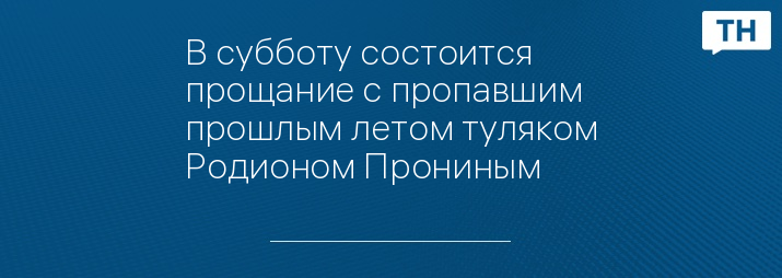 В субботу состоится прощание с пропавшим прошлым летом туляком Родионом Прониным