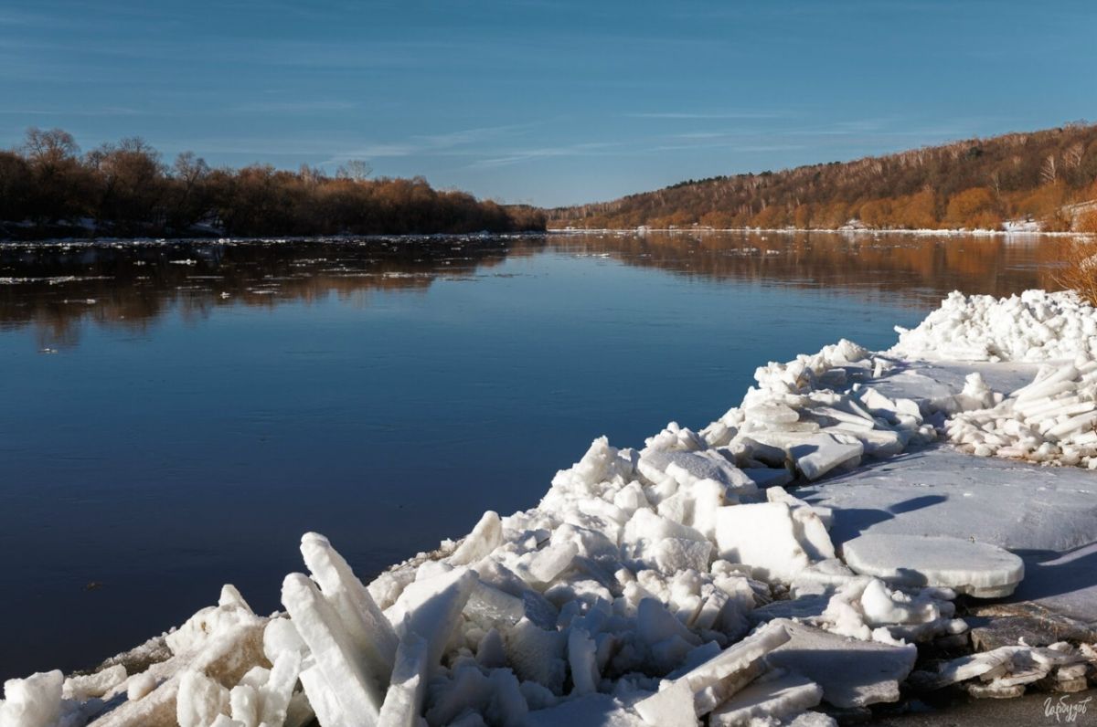Тульский фотограф запечатлел ледоход на реке Оке в Тульской области