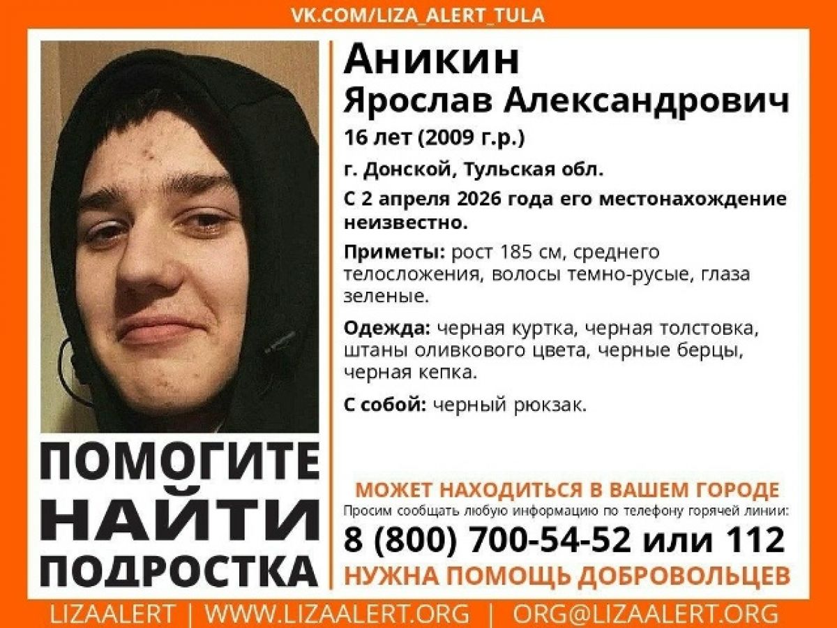 В Туле ищут 16-летнего Ярослава Аникина, пропавшего 2 апреля