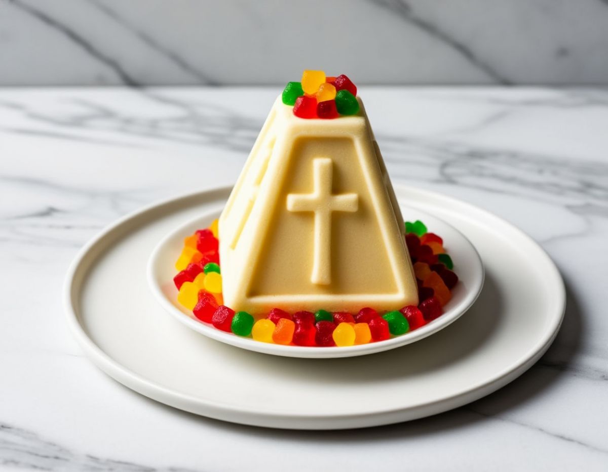 Традиционно творожную пасху делают в форме усечённой пирамиды – она символизирует Гроб Господень и победу жизни над смертью.