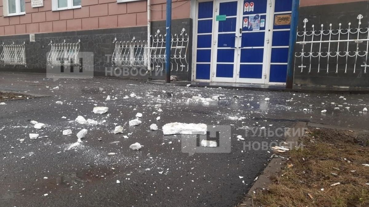 Падающие с верхних этажей дома №5 частички фасада попадают прямо на дорогу, где проходят пешеходы.