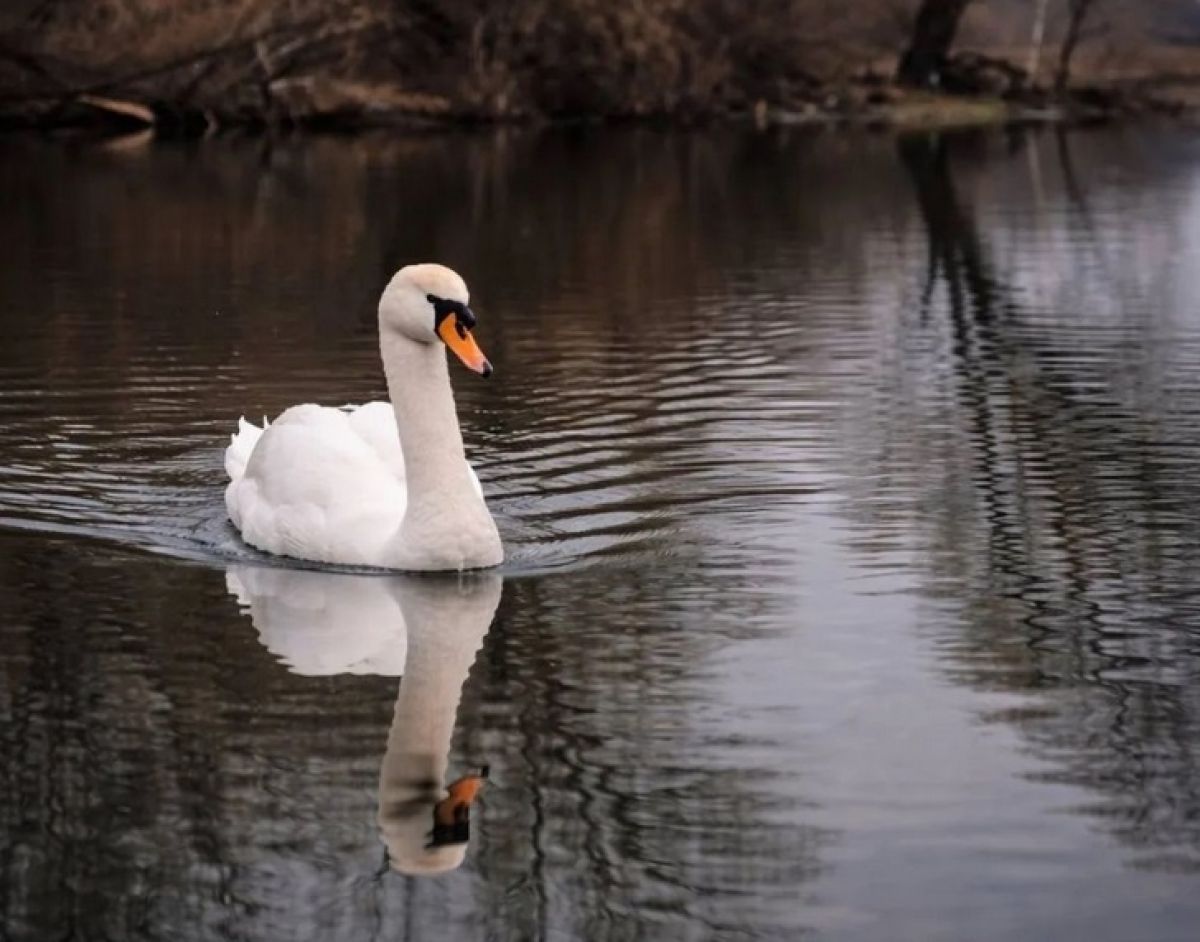 Фотограф Артем Зелюкин опубликовал в соцсетях фотографию лебедя, который позировал ему на одном из водоемов Долгоруковского округа.
