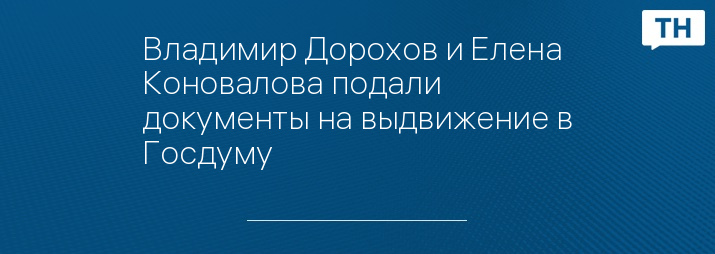 Владимир Дорохов и Елена Коновалова подали документы на выдвижение в Госдуму