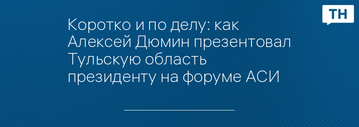 Коротко и по делу: как Алексей Дюмин презентовал Тульскую область президенту на форуме АСИ