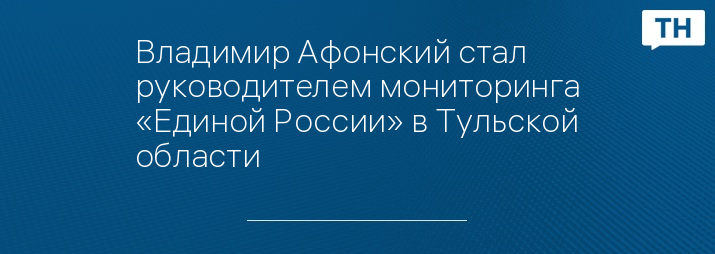 Владимир Афонский стал руководителем мониторинга «Единой России» в Тульской области