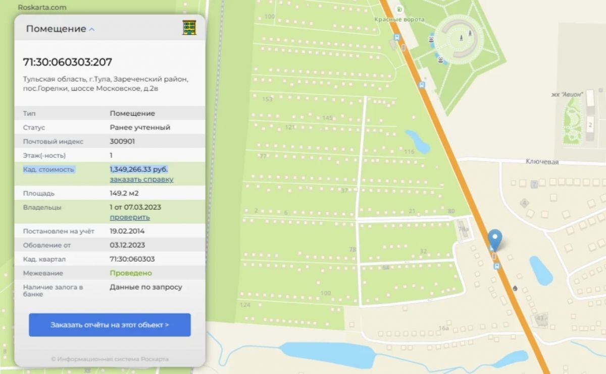 Согласно данным Росреестра, на сегодняшний день кадастровая стоимость объекта составляет 1 349 266 рублей.