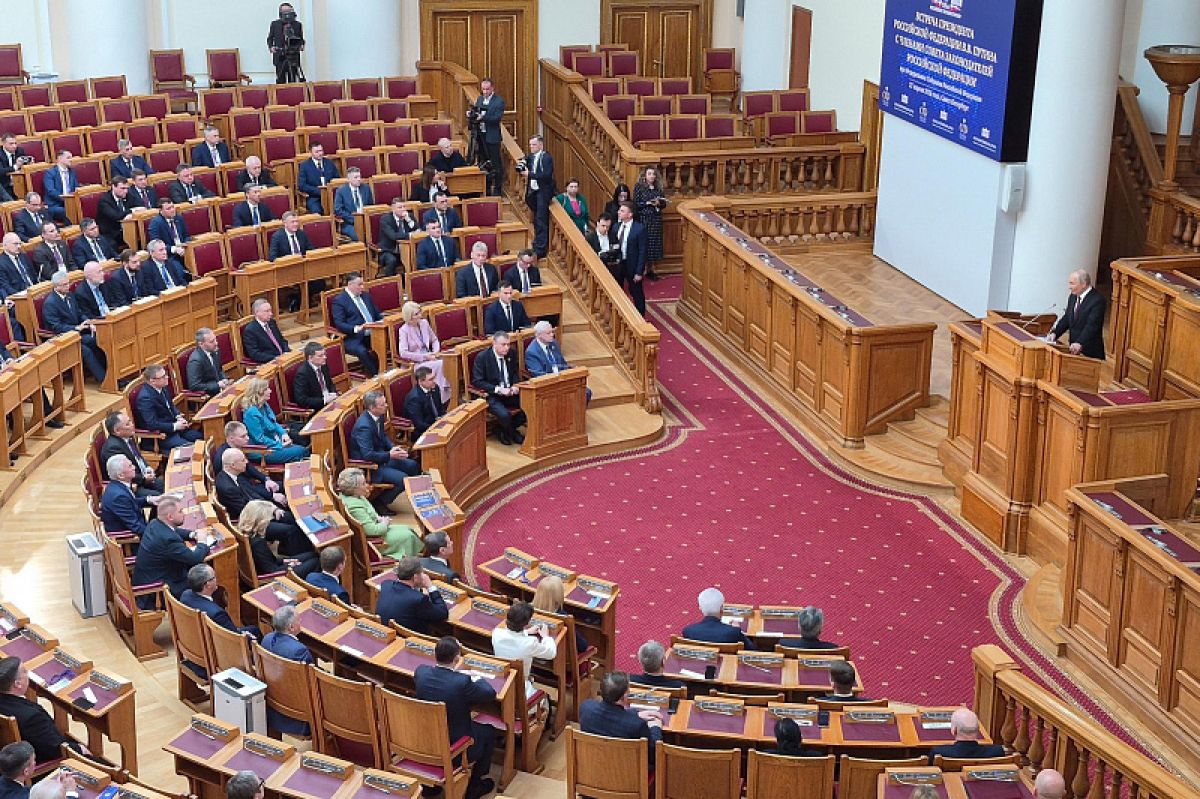 Встреча с Президентом России Владимиром Путиным прошла в Таврическом дворце Санкт-Петербурга. В мероприятии также приняли участие высокопоставленные представители федеральных и региональных органов власти, включая Валентину Матвиенко, Александра Жукова и председателей законодательных собраний субъектов РФ.