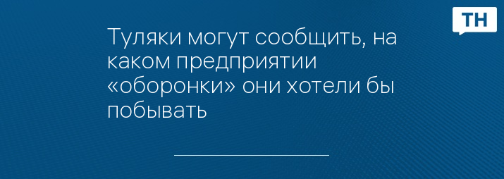 Туляки могут сообщить, на каком предприятии «оборонки» они хотели бы побывать
