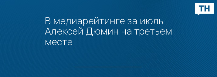 В медиарейтинге за июль Алексей Дюмин на третьем месте