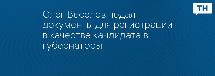 Олег Веселов подал документы для регистрации в качестве кандидата в губернаторы