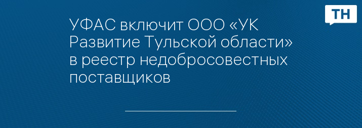 УФАС включит ООО «УК Развитие Тульской области» в реестр недобросовестных поставщиков