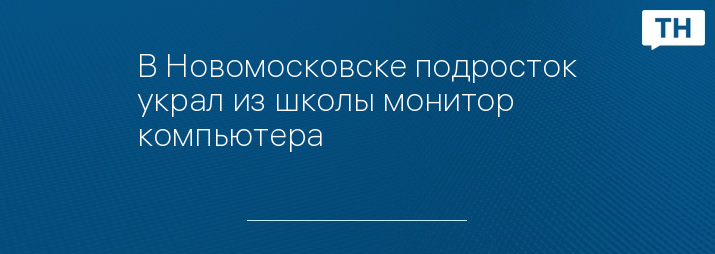 В дежурную часть отдела МВД по городу Новомосковску поступила информация, что неизвестный пытается проникнуть в помещение школы в микрорайоне Сокольники. На место происшествия незамедлительно выехала следственно-оперативная группа. В результате оперативных и слаженных действий «по горячим следам» полицейскими установлен 15-летний учащийся данного учебного заведения. Стражами порядка установлено, что подросток путем отжатия пластикового окна учебного класса совершил кражу компьютерного монитора. Когда юного злоумышленника доставили в дежурную часть полиции, он сразу же сознался в содеянном.