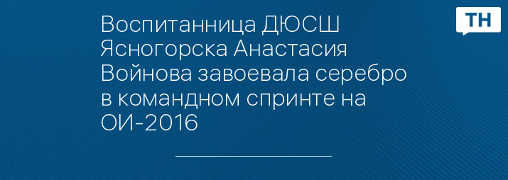 Воспитанница ДЮСШ Ясногорска Анастасия Войнова завоевала серебро в командном спринте на ОИ-2016