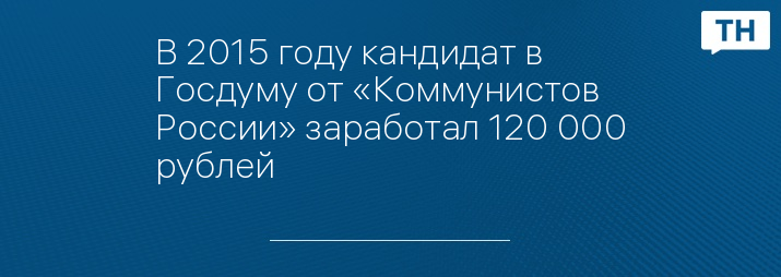 В 2015 году кандидат в Госдуму от «Коммунистов России» заработал 120 000 рублей