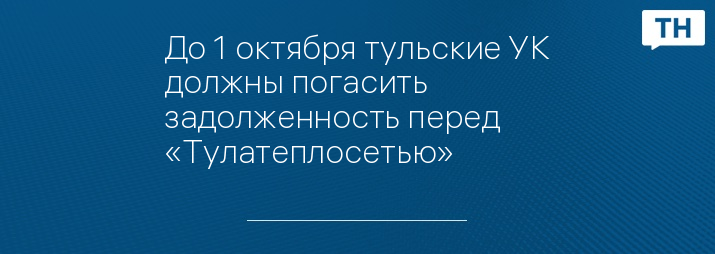До 1 октября тульские УК должны погасить задолженность перед «Тулатеплосетью»