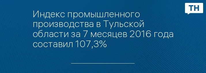 Индекс промышленного производства в Тульской области за 7 месяцев 2016 года составил 107,3%