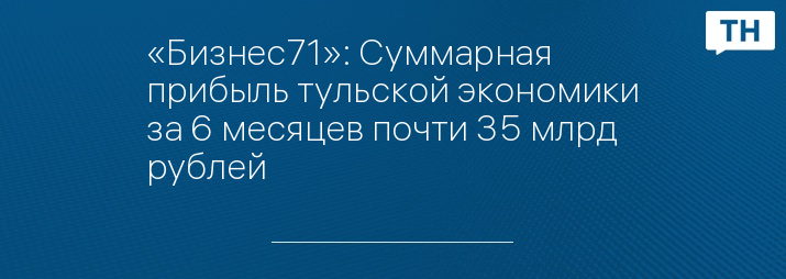 «Бизнес71»: Суммарная прибыль тульской экономики за 6 месяцев почти 35 млрд рублей