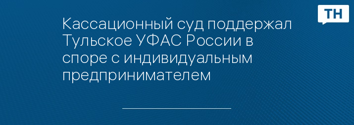Кассационный суд поддержал Тульское УФАС России в споре с индивидуальным предпринимателем