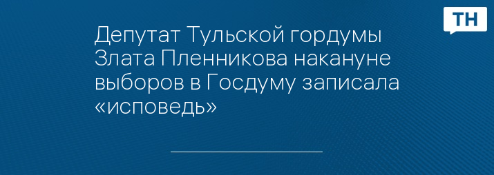 Депутат Тульской гордумы Злата Пленникова накануне выборов в Госдуму записала «исповедь»