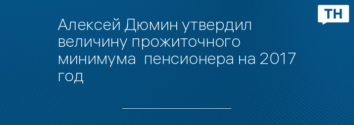 Алексей Дюмин утвердил величину прожиточного минимума пенсионера на 2017 год