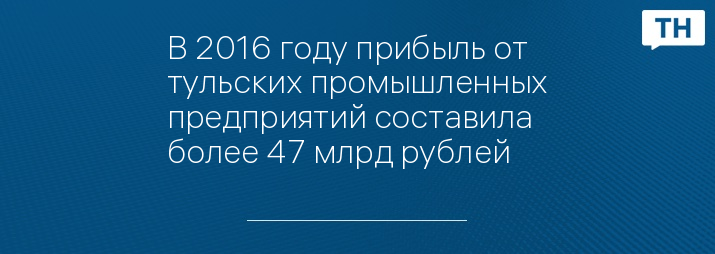 В 2016 году прибыль от тульских промышленных предприятий составила более 47 млрд рублей
