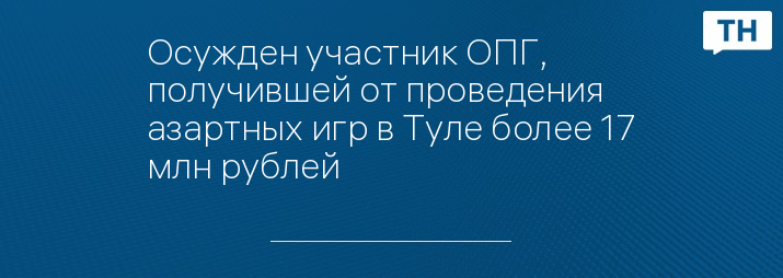Осужден участник ОПГ, получившей от проведения азартных игр в Туле более 17 млн рублей